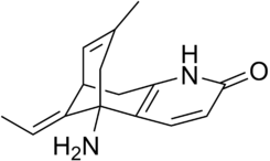 Huperzine A is a polycyclic sesquiterpene alkaloid with molecular formula of C15H18N2O [8]. Its biosynthesis is not well researched and likely involves both precursors of isoprenoids and alkaloids [9]. Multiple total syntheses have also been performed [10].